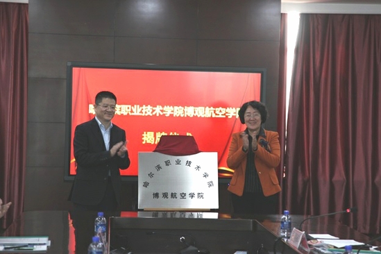 随后,刘申和宋学明签署了校企合作协议,刘敏和宋学明共同为“博观航空学院”揭牌。