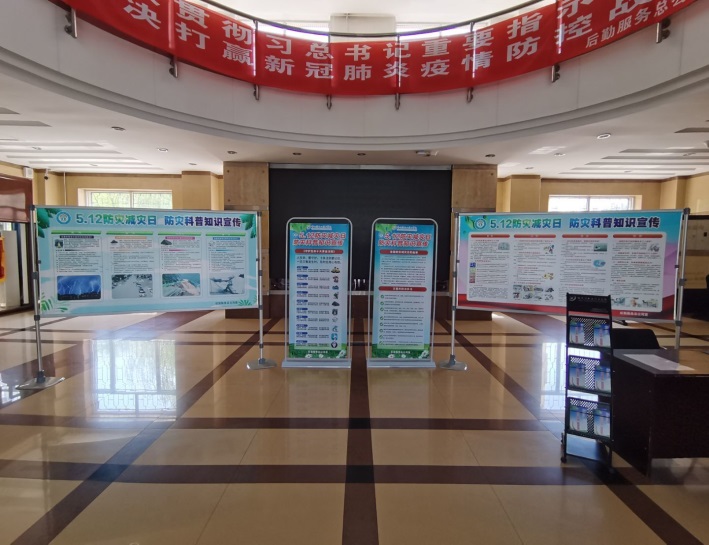 5月12日是我国第13个防灾减灾日,后勤服务总公司、国有资产管理处联合党支部制作3套防灾减灾日活动宣传展板摆放在办公楼、一号、二号教学楼。